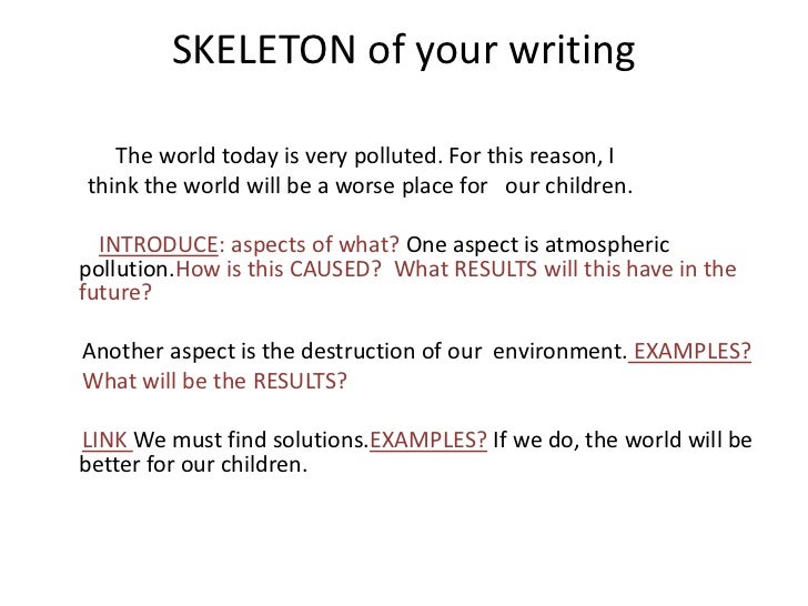 It, too, is a claim that requires support to be convincing. And the next step is to develop each "good reason" into a solid, detailed paragraph. Look back over your notes, scour your memory, and squeeze your imagination to discover what facts, details, skeleton essay plan, examples, and illustration can help your reader understand your ideas and see the reasoning they are based on, skeleton essay plan. Consider your support sentences one at a time and show reader the specifics that have led you to make these claims.
